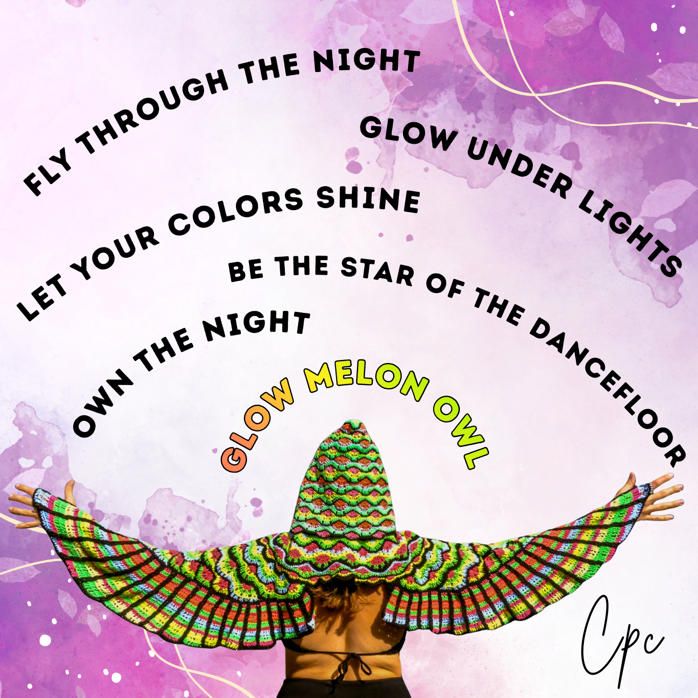 Inspired by glowing forests and night-time dancefloors, the Glow Melon Owl Set is made to help you shine. UV-reactive colours come alive under blacklight, highlighting every movement as you dance.